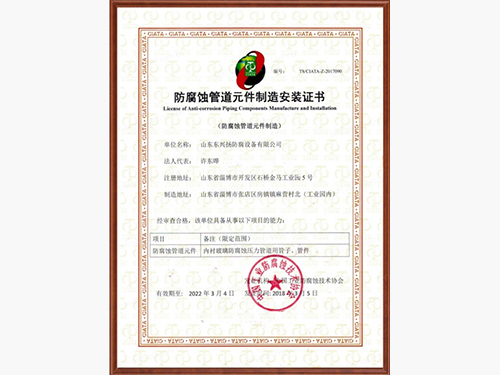 山東東興揚(yáng)(淄博五環(huán))防腐設(shè)備有限公司是專業(yè)的鋼襯玻璃廠家,鋼襯玻璃,鋼襯玻璃管道等產(chǎn)品使用壽命長,造價(jià)低,集開發(fā)、設(shè)計(jì)、生產(chǎn)、經(jīng)營于一體的專業(yè)性的工業(yè)防腐單位,被評選為中國 工業(yè)防腐蝕技術(shù)協(xié)會會員企業(yè)單位。